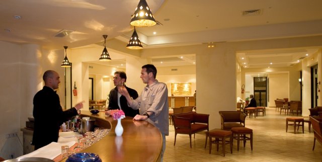 La partie commune de l’hôtel offre une réception, un bar, deux salles de restaurant regroupées autour d’un patio recouvert d’un dôme. A l’extérieur, sa piscine à débordement et ses jardins vous accueilleront avec une ambiance douce et raffinée.